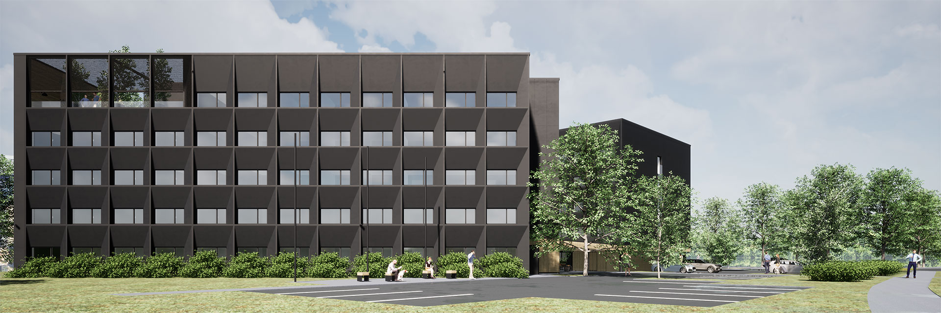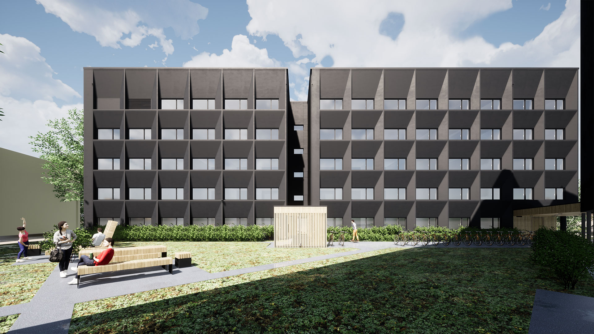 The reconstruction aims not only to improve the buildings’ energy efficiency, provide modern-standard ventilation, and update the interiors, but also to create a striking corner feature at the edge of the university campus.