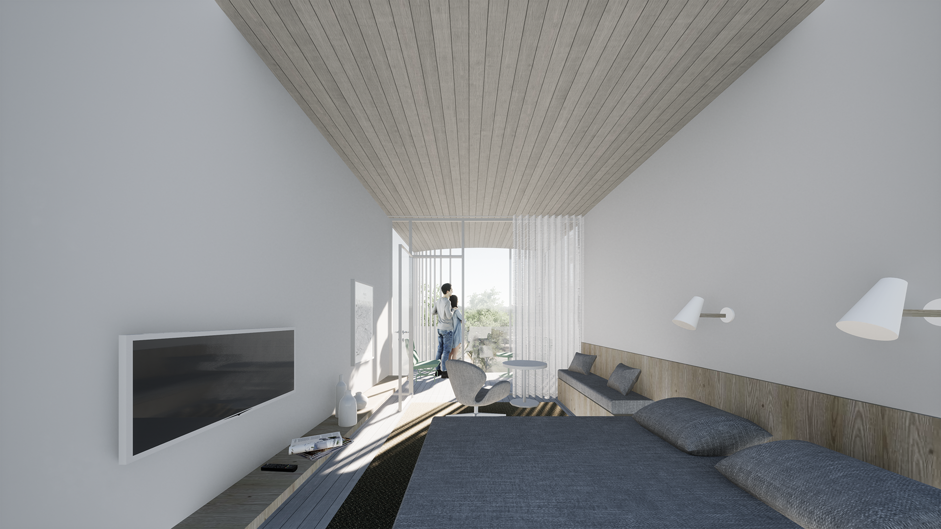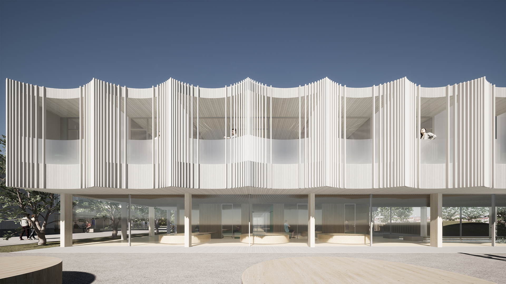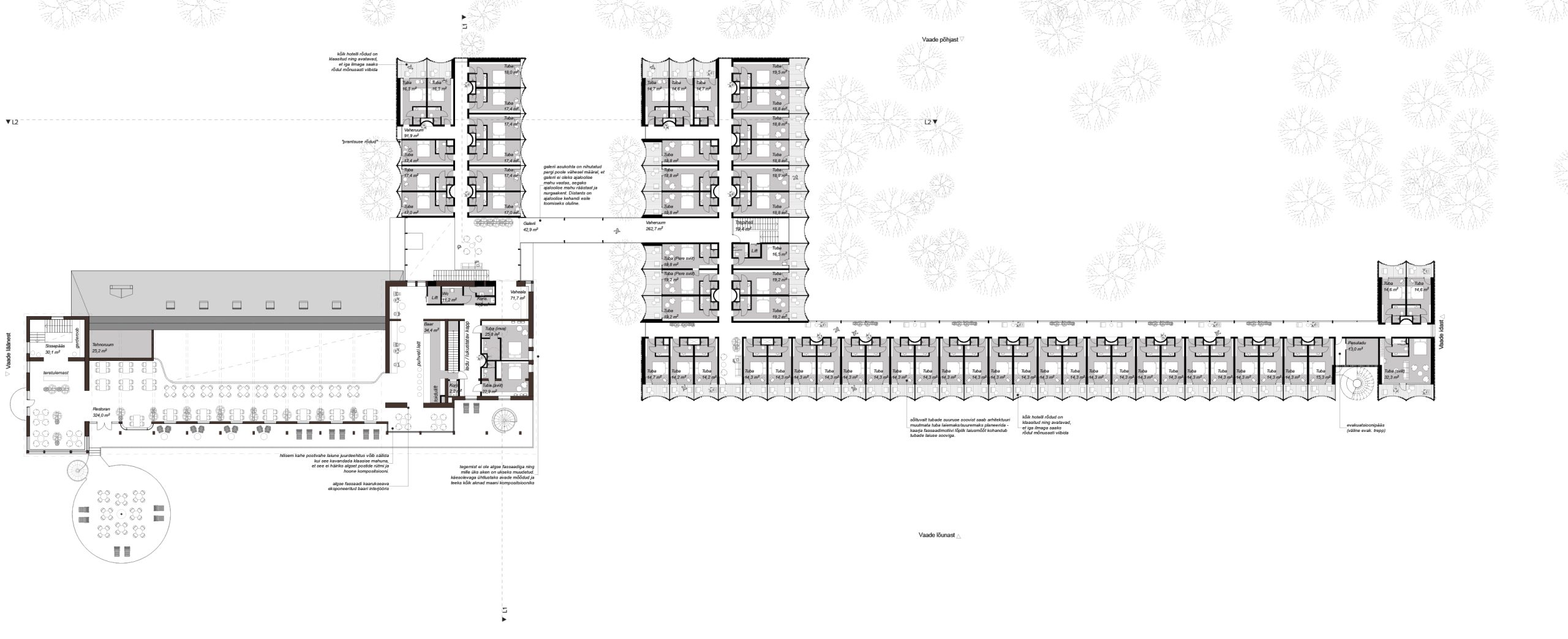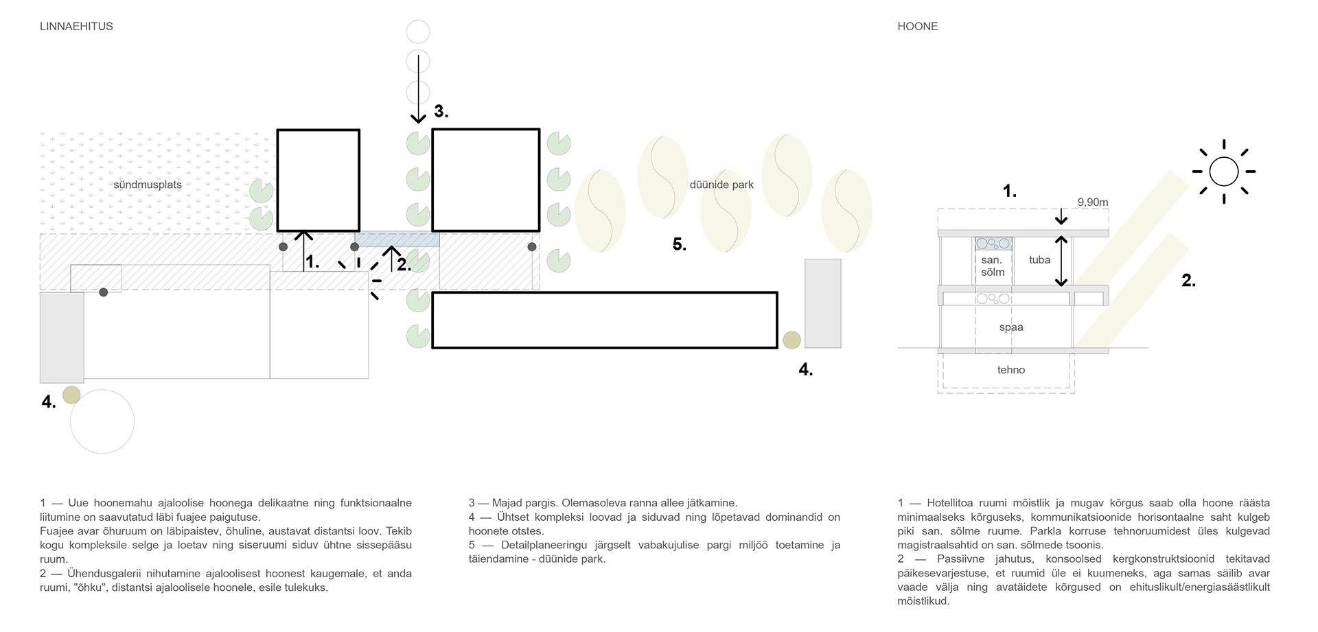 This competition entry proposes a solution that, on one hand, provides a dignified continuation to the lifecycle of a masterpiece by the ‘Old Master’ (as architect Kesa respectfully refers to his colleague), Olev Siinmaa – the Pärnu Beach Building. At the same time, the Pärnu beach area is enhanced by a prestigious new building that applies the same principles Siinmaa lived by, but in a contemporary key: functional and purposeful spatial design, avoidance of excessive decorativeness, and an honest approach to materials and structures, paired with high-quality craftsmanship, without ever neglecting the aesthetic side of the art of building.